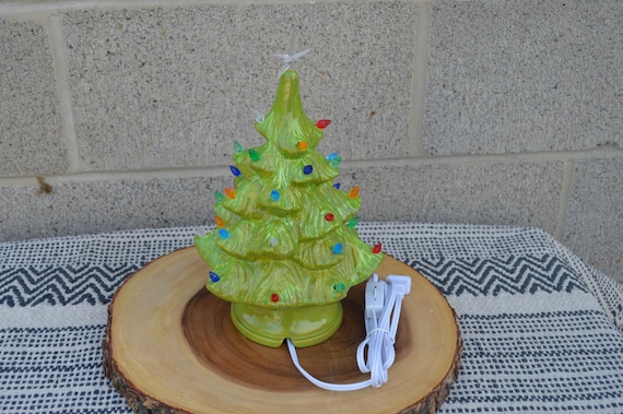 Vintage Style Ceramic Christmas Tree With Lights Hand Painted Bright Jolly Green Small Etsy Uk